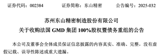 5月13日,东山精密发布公告称,为建立公司在欧洲产业布局,提升公司在汽车零部件领域市场规模,公司子公司DSBJ PTE. LTD(以下简称“DSG”)拟收购法国Groupe Mécanique Découpage(以下简称“GMD集团”)100%股权并对其进行债务重组,交易金额合计约1亿欧元(折合人民币约8.14亿元)。此次交易完成后,GMD集团将成为东山精密的全资子公司。