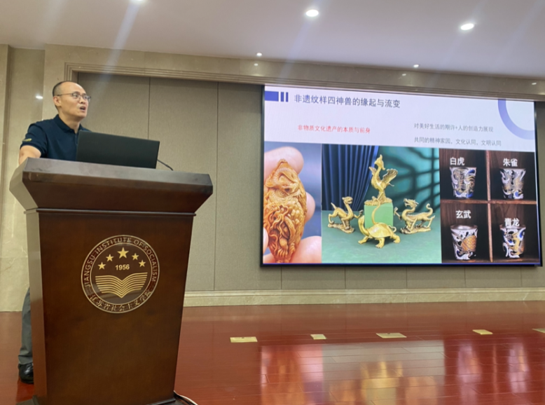 讲座与交流中,南京工业大学艺术设计学院副教授付强讲授《非遗溯源与现实意义》。
